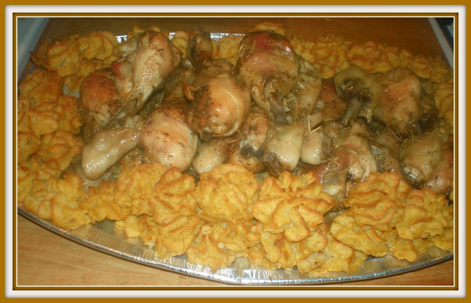Fusi di Pollo con Guanciale e Patate Duchessa
