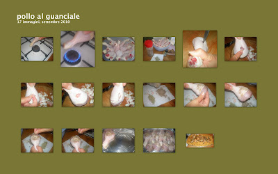 Privare il pollo dei residui di piume, lavarli e metterli a scolare quindi praticare dei fori profondi su entrambi i lati ed inserire al loro interno il guanciale quindi, aromatizzare con l'insaporitore per arrosti ed il rosmarino. Ungere con l'olio extravergine d'oliva la teglia stendenolo per bene con le mani ed eliminando il superfluo ( non necessita di un grosso quantitativo di olio in quasnto il pollo stesso, in cottura rilascia il suo grasso anche se minimo ma più che sufficiente), e sistemare all'interno i fusi di pollo, quindi infornare a 250° per circa 1 ora, controllando la cottura e rigirandoli da entrambi i lati di volta in volta, finché risultino morbidi e succosi ma, contemporaneamente, non rilascino più sangue (in poche parole carni rosate ma cotte). Servire ben caldo in un piatto di servizio circondato da Patate Duchessa (per la ricetta cliccate su questo link: http://nonsolodelizie.blogspot.com/2010/09/patate-duchessa.html )