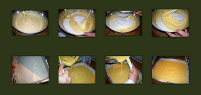 Mettere a montare a bagnomaria le uova con lo zucchero ed il miele affinché si intiepidiscano, quindi spostare il composto in una terrina capiente, e con le fruste elettriche, continuare a montare fino a che non divenga soffice e spumoso, di colore giallo chiarissimo, quasi biancastro. A questo punto, cominciare ad aggiungere la farina, l'amido e la vanillina setacciati insieme, mescolando delicatamente, con un cucchiaio di legno, dal basso verso l'alto, per non smontare il composto. Versare in una tortiera imburrata ed infarinata, quindi cuocere a forno preriscaldato a 190° C. per 20 minuti. Il Pan di Spagna si può congelare avvolto in una pellicola per alimenti.