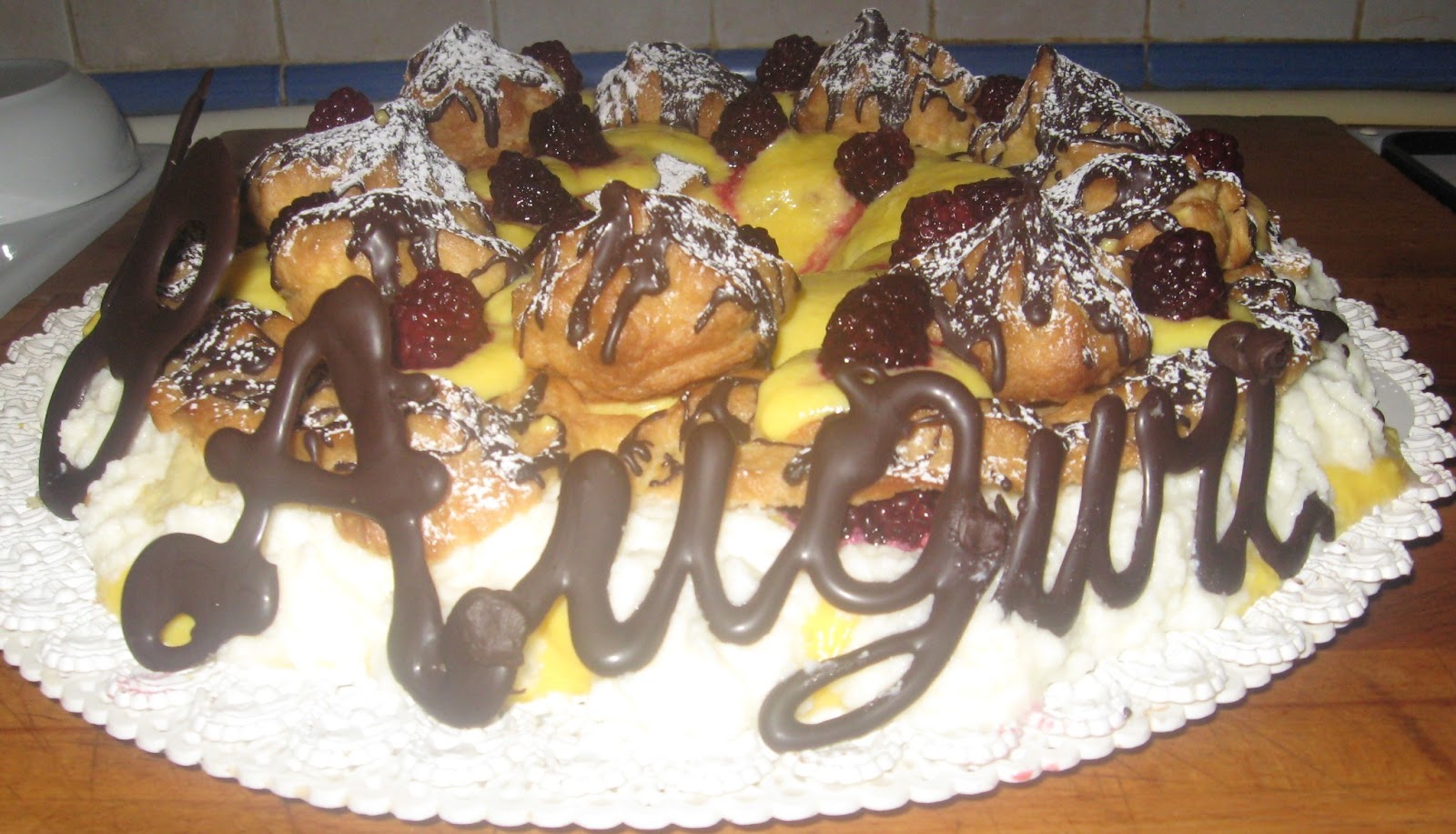 Zeppolone alla Chantilly e Panna con Bignè More e Cioccolato Fondente.
