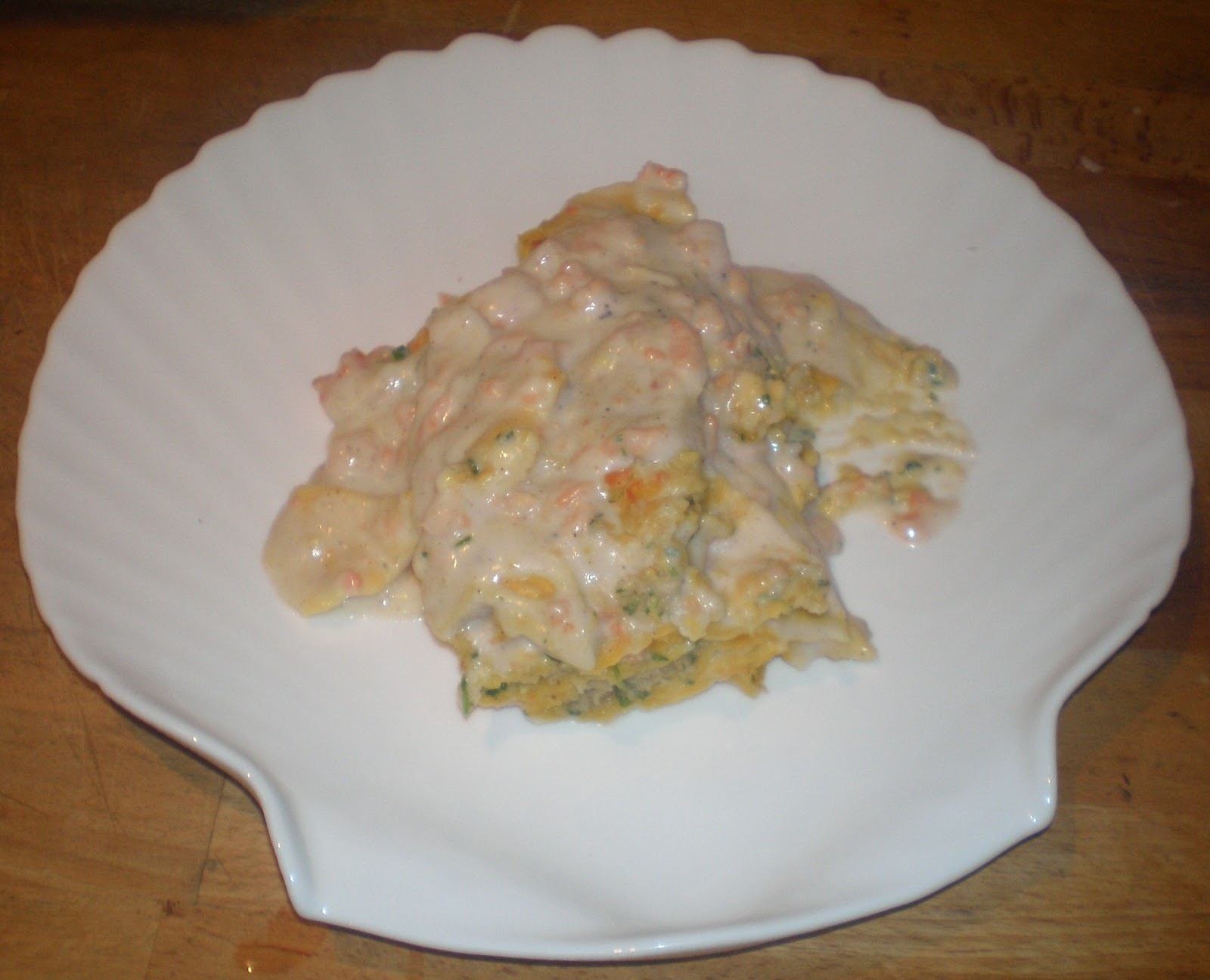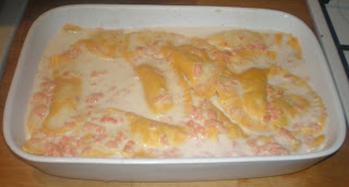 Agnolotti Rucola e Gamberetti con Besciamella al Salmone Affumicato