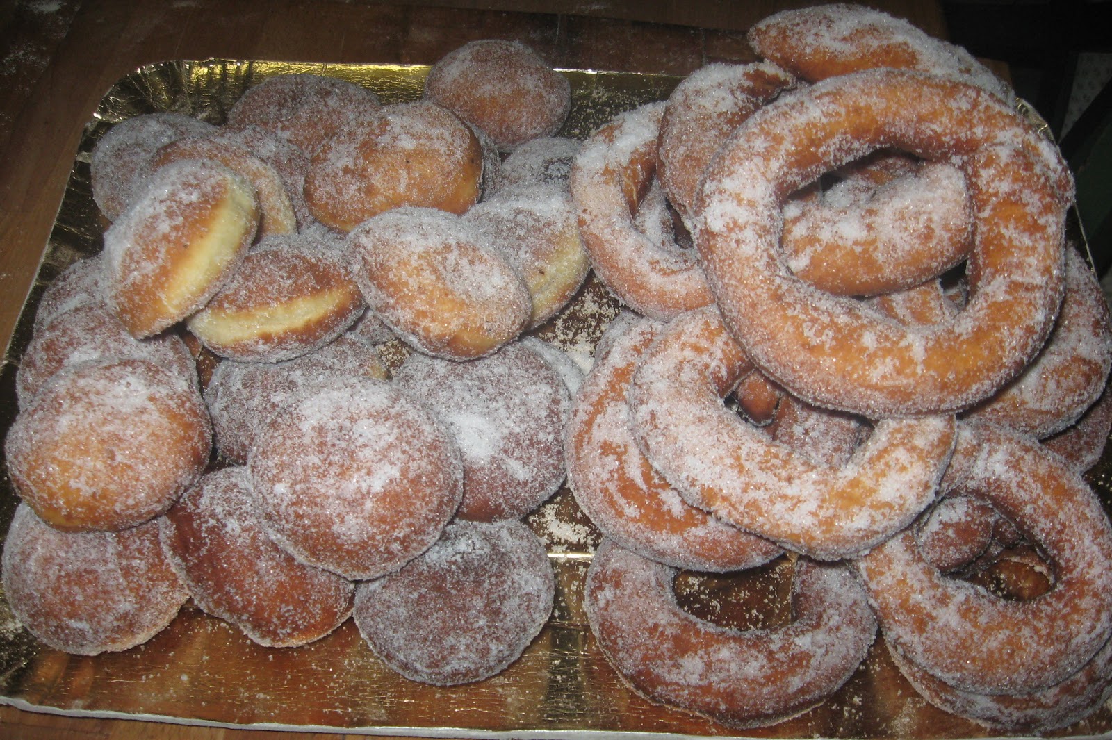 chiuderli a cerchio e metterli a lievitare, su vassoi spolverizzati da farina, fino a che non raddoppino il loro volume, quindi friggerli in abbondante olio caldo, avendo cura di rigirarle continuamente per non bruciarle e per farle gonfiare ulteriormente. Fare scolare l'olio di frittura e passarle ancora calde in abbondante zucchero semolato. Servire calde.