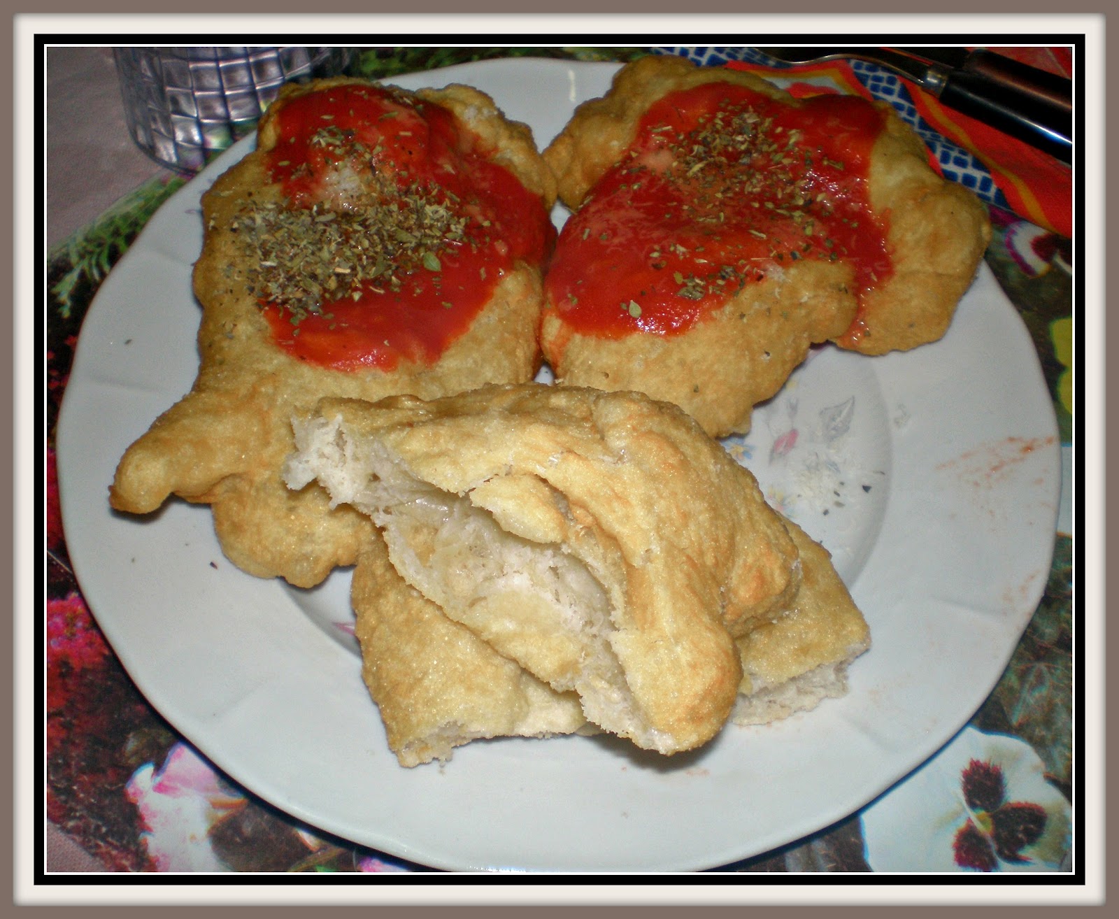 Nella planetaria, mettere la farina ed il lievito spezzettato e col gancio iniziare ad impastare a velocità minima, aggiungendo l'acqua a poco a poco. Quando l'impasto si sarà compattato, aggiungere il sale alternandolo con l'acqua ed aumentare la velocità per completare l'impasto che dovrà risultare morbido e molto elastico. Mettere a lievitare in ambiente tiepido (io uso il forno preriscaldato ed ovviamente spento), fino a che non avrà raddoppiato la sua dimensione. Contemporaneamente, a parte, preparare il sugo, mettendo a rosolare, in un pentolino, l'aglio con l'olio, insaporire col sale, il pepe, e se possibile, quando è stagione anche con qualche foglia di basilico. Far cuocere a fiamma bassa fino a che la salsa non risulti densa. Tenere da parte Dopo la lievitazione, tagliare l'impasto in tanti pezzi tutti uguali e non troppo grandi, perché in cottura aumenteranno ulteriormente di volume, tirare ciascun pezzo per ridurne lo spessore, e friggere in abbondante olio, a fiamma media, girando da entrambe le parti, fino a completa doratura. Sgocciolare l'olio in eccesso e condire con la salsa di pomodoro, preparata precedentemente, col parmigiano grattugiato e con l'origano. Consumare calde.