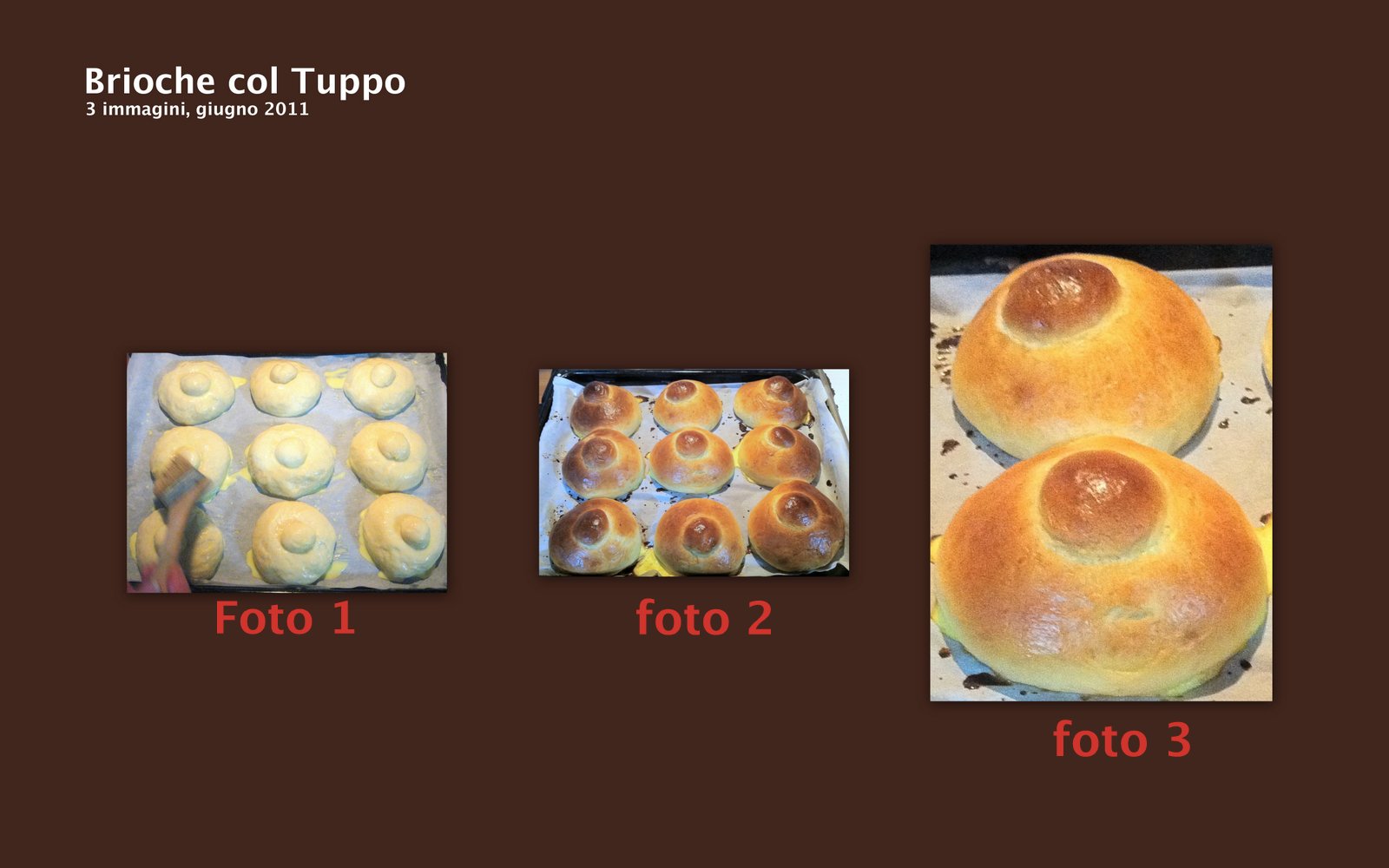Nella planetaria con la frusta k mettete la farina, il lievito sbriciolato, lo zucchero e le uova e miscelate bene il tutto. A questo punto montate sostituite la frusta con il gancio e riprendete ad impastare a velocità 2 aggiungendo il latte. Continuate fino a che il composto non risulti ben morbido (se necessario aggiungete ancora un poco di latte), liscio, ed elastico, si deve creare una forte maglia glutinica. Spegnete la planetaria e trasferite l'impasto su una spianatoia spolverizzata di farina, ripiegatelo più volte su se stesso, formate una palla e mettete a riposare per circa 30 minuti a temperatura ambiente, coperto con un canovaccio pulito; trascorso il tempo riprendete riprendete l'impasto, formate tante palline tutte uguali di circa 6 o 7 cm. ciascuna, formate in seguito altrettante palline più piccole, di circa due cm. e inseritele al centro di ogni brioche formando il cosiddetto "Tuppo", mettetele in una teglia rivestita con carta da forno e fatele lievitare in luogo tiepido fino a che non avranno raddoppiato il loro volume, spennellatele con un uovo battuto con un poco di latte o di panna liquida (vedi figura 1) e cuocetele in forno preriscaldato, sopra e sotto ventilato a 180° per circa 15 minuti fino a che non saranno dorate in superficie (figure 2 e 3). Potete consumare le briche con il gelato o, come si usa fare a Palermo, per colazione, insieme ad una bella granita di vostro gusto decorata con abbondante panna montata, oppure con marmellata, Nutella o anche vuota in quanto è gustosa anche così.