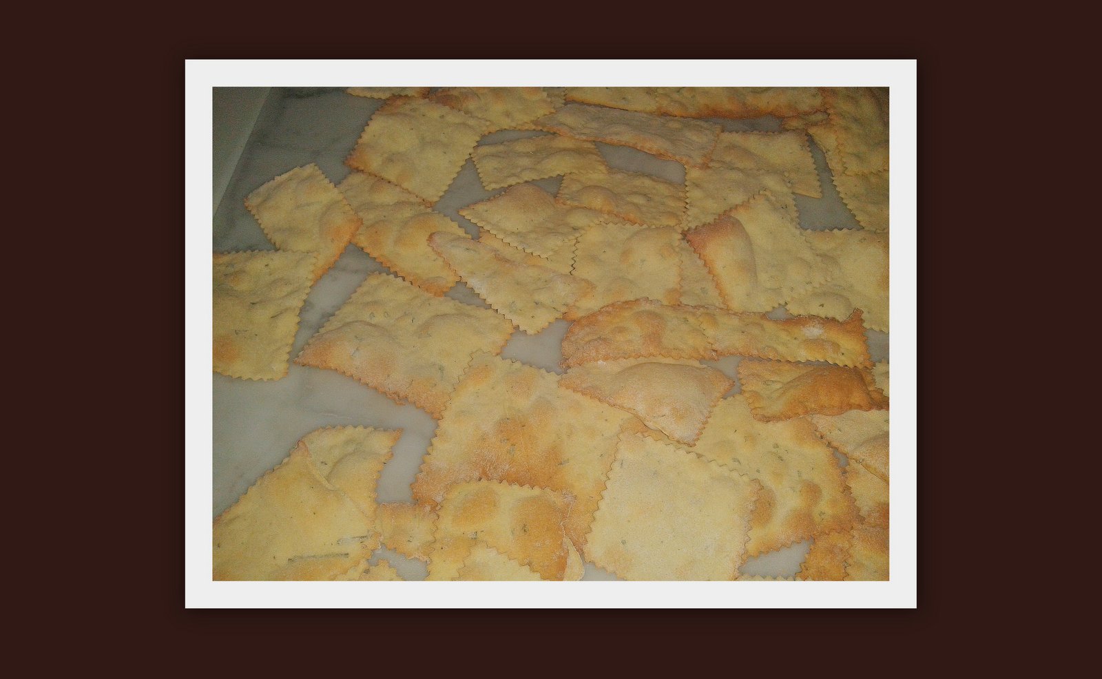 Far raffreddare del tutto i crackers a temperatura ambiente perché diventino croccanti e friabili, quindi conservarli in una busta (foto 13) e chiuderla per bene per evitare che prendendo aria perdano la loro fragranza. La presenza della farina di ceci li rende sfiziosi ed anche molto adatti ad essere utilizzati come aperitivo spalmandoli, per esempio, con un formaggio cremoso o con della mousse di tonno o di salmone affumicato.
