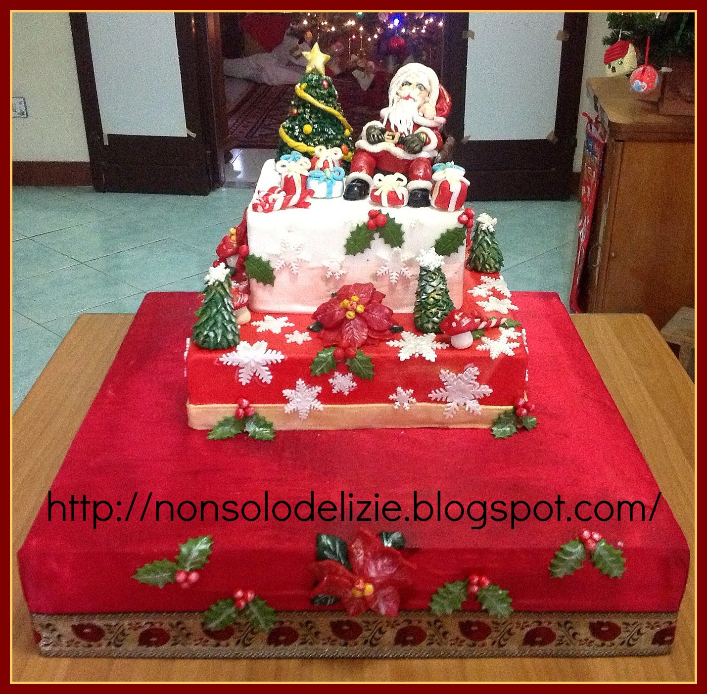 Questa è la torta per il saggio di Pianoforte del mio tesoro, Mattia. La base più grande, che misura 50 x 50 cm. è il supporto per i 20 cupcake decorati con soggetti natalizi, che ho preparato per tutti i piccoli partecipanti come augurio per questo Natale. Ed è con questa torta che voglio augurare anche a voi tutti