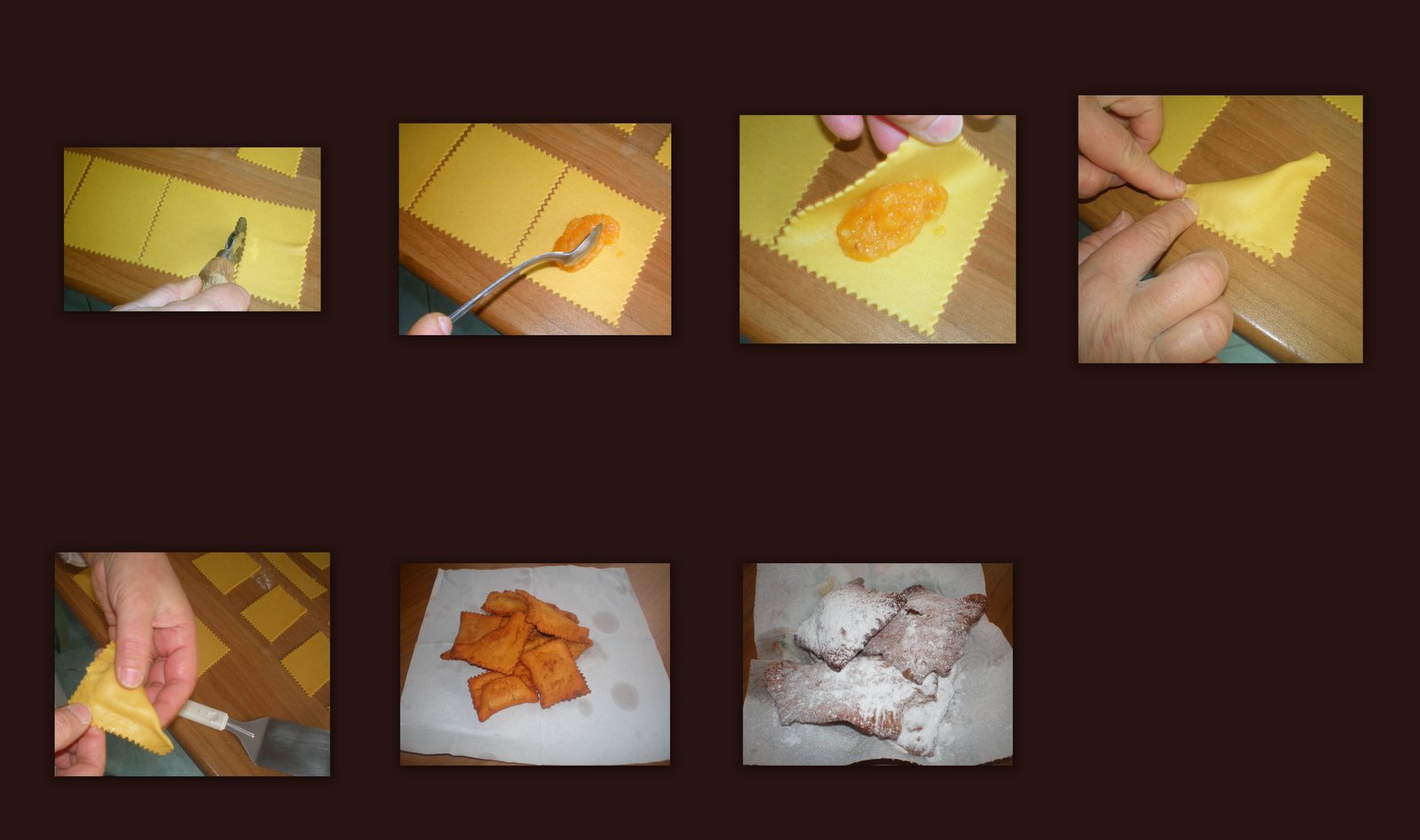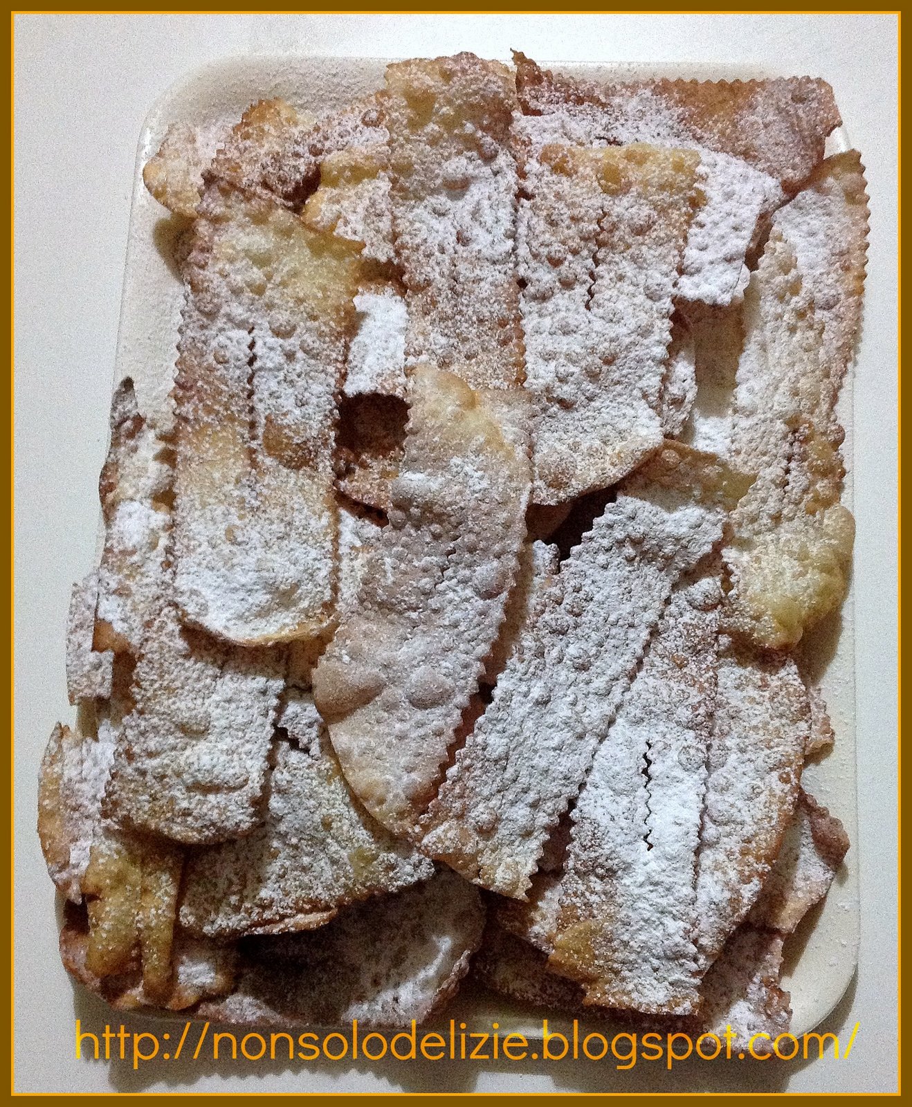 Consiglio: potete usare lo stesso impasto per creare delle gustose merende, basta tagliare dei quadrati leggermente più spessi, mettere al loro interno della marmellata, della Nutella, della crema pasticciera oppure del cioccolato a piccoli cubetti, ripiegare a metà su se stessi formando dei triangoli e quindi friggere e poi spolverizzare con lo zucchero a velo. Credetemi, sono una vera golosità!