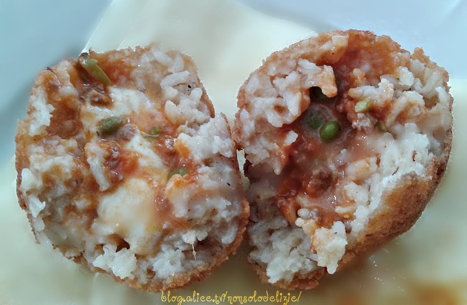 fare un battuto di carota, cipolla e sedano, farlo soffriggere con olio extravergine d'oliva, aggiungere il tritato, far rosolare per bene, unire sale. pepe, noce moscata, qualche foglia di alloro spezzata a metà, 3 o 4 chiodi di garofano schiacciati, 3 cucchiai di concentrato di pomodoro e mezzo bicchiere di latte. In un pentolino a parte fate sciogliere il burro, unite la farina e fate cuocere per 5 minuti. Unite questo composto al ragù a fine cottura, per far tirare bene il sugo, spegnete e fate raffreddare totalmente. Procedete con la preparazione delle arancine, facendo delle palline di riso di 6 cm. circa di diametro, praticate un buco profondo al centro, inserite un cucchiaio di ragù e qualche cubetto di fior di latte, quindi richiudete e pressate per bene per fare compattare il riso. Preparate così tutte le arancine. Per la panatura, fate una pastella abbastanza densa di farina e acqua, passate ciascuna arancina prima in questa pastella e poi nel pan grattato, compattate per bene rigirando più volte tra le mani e mettete da parte; completate l'operazione con tutte le altre. Friggete in abbondante olio di semi a media temperatura fino a dorare la superficie, fate sgocciolare, sistemate in una placca antiaderente e passate in forno per 10 minuti circa per far sciogliere bene il ripieno. Servitele ben calde.