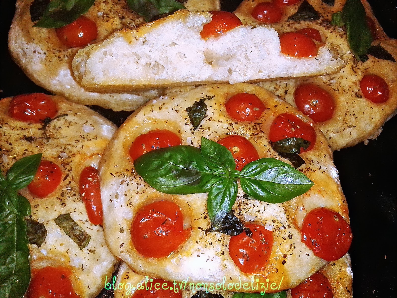 Focaccine con pomodorini e basilico