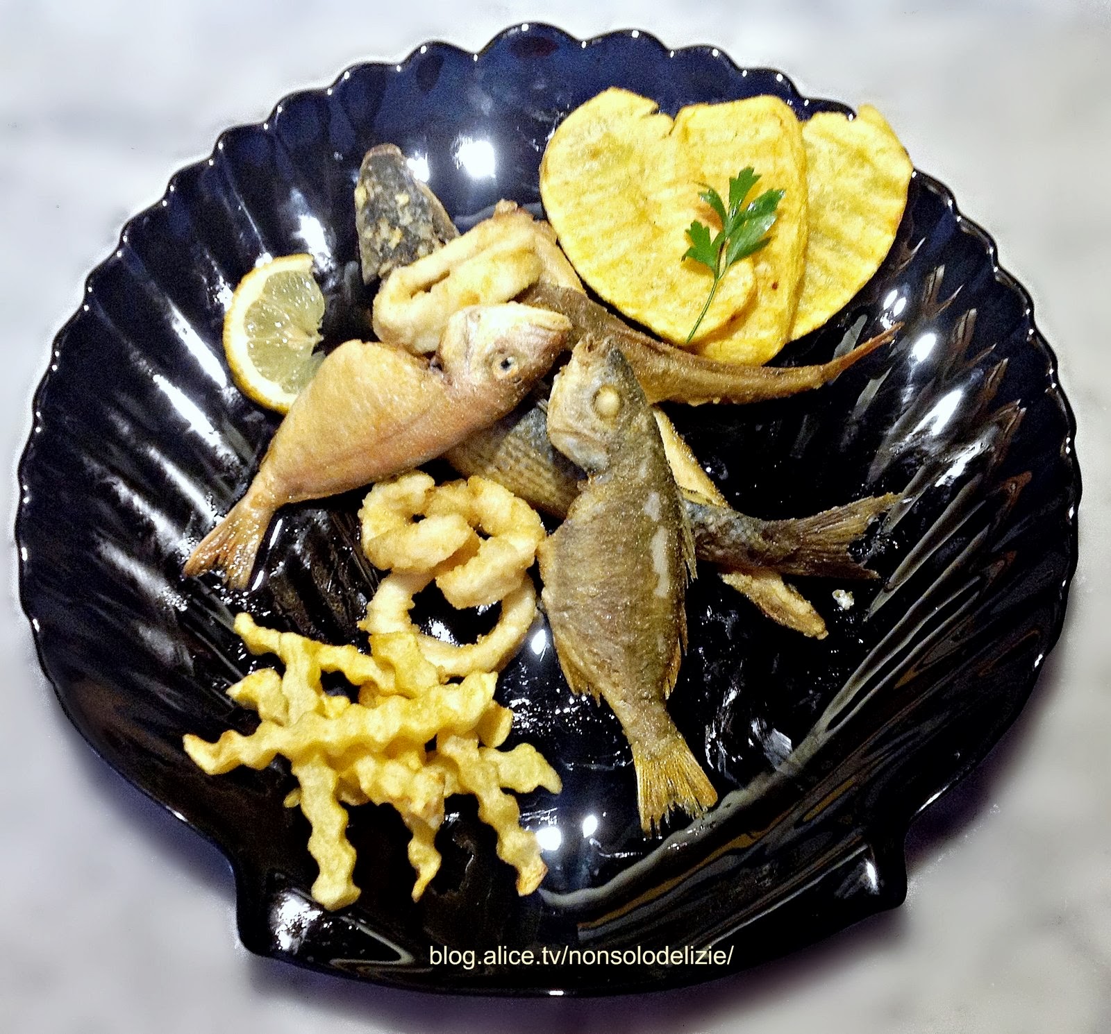 Frittura di paranza con patate ondulate