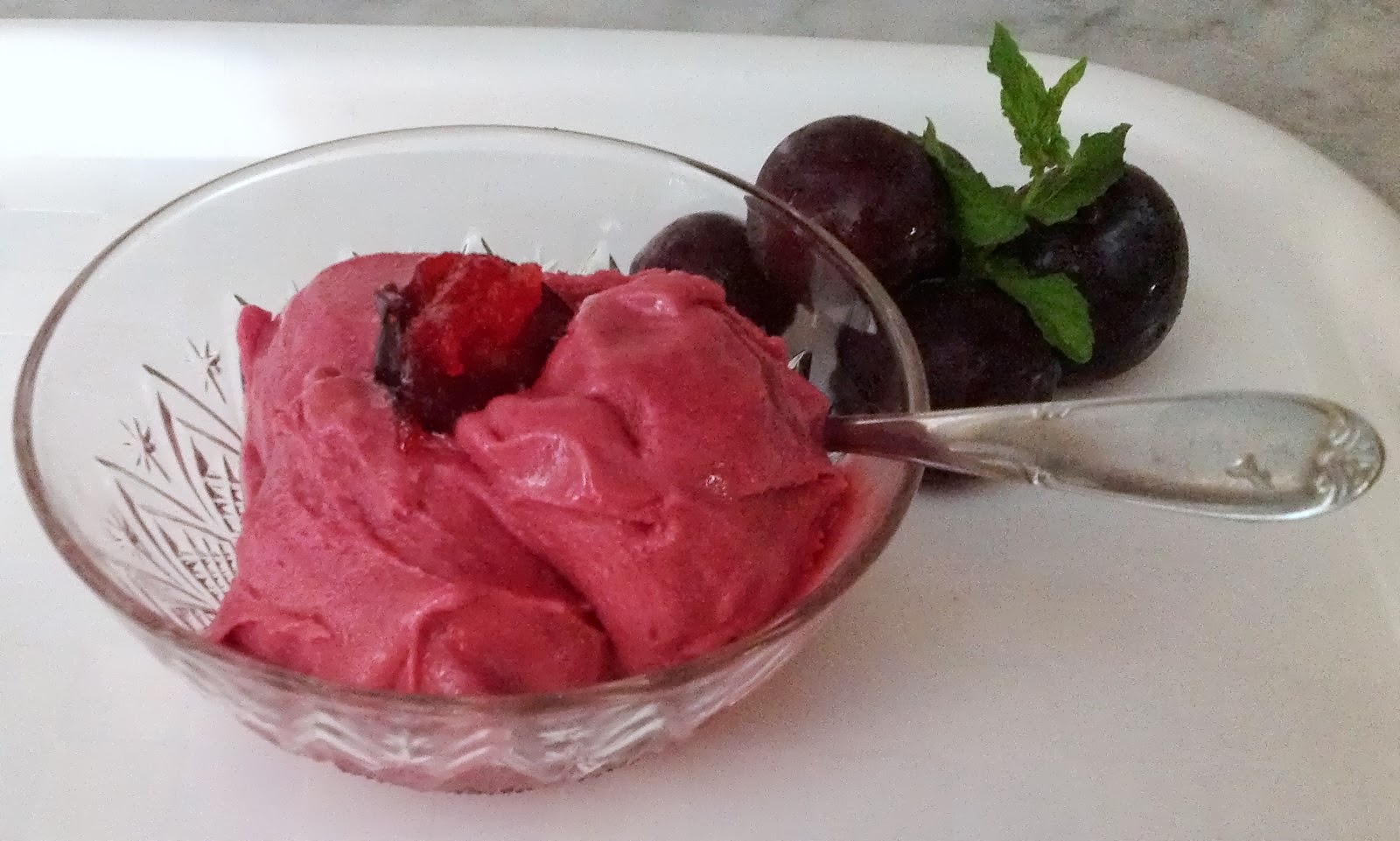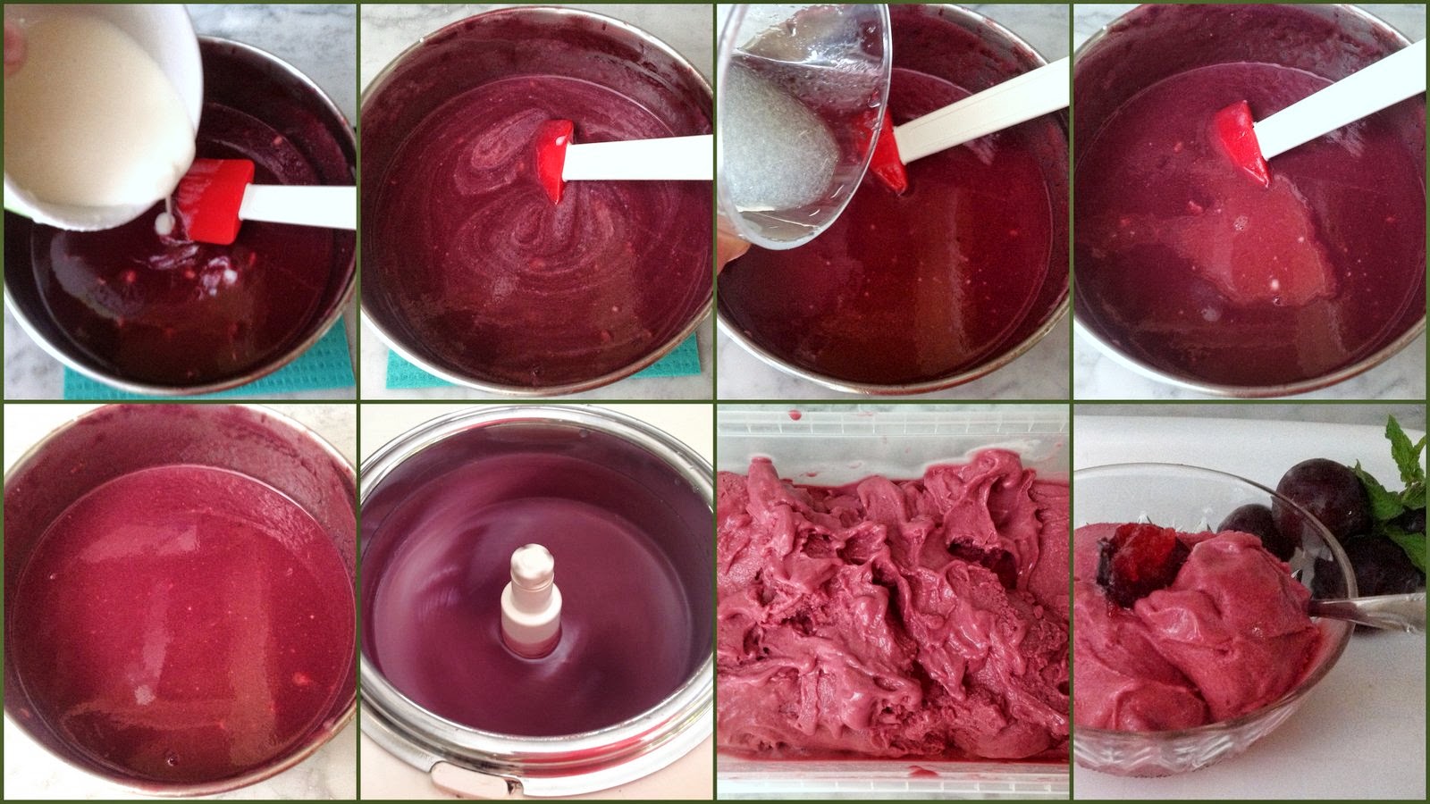 Lavate le susine, asciugatele per bene e privatele della buccia e dei noccioli, quindi omogeneizzate la polpa con un frullatore ad immersione, aggiungete lo zucchero e mettete sul fuoco a fiamma minima fino a far sciogliere completamente lo zucchero (cercate di non portare ad ebollizione). Una volta che lo zucchero si sarà sciolto del tutto, cioè quando il composto avrà assunto un colore lucido e setoso, spegnete il fuoco e fate raffreddare a temperatura ambiente. Nel frattempo scaldate leggermente il latte e con esso sciogliete il neutro fino ad ottenere una sorta di crema. Quando il composto di susine si sarà raffreddato, unite il succo di mezzo limone e il latte col neutro, mescolate per bene quindi versate il tutto nella gelatiera, azionate la macchina e seguite il programma come da istruzioni fino a che non avrete ottenuto un gelato morbido ma compatto, proprio come quello delle gelaterie.