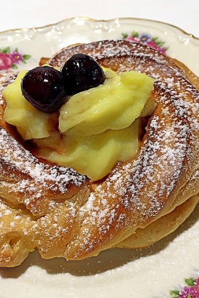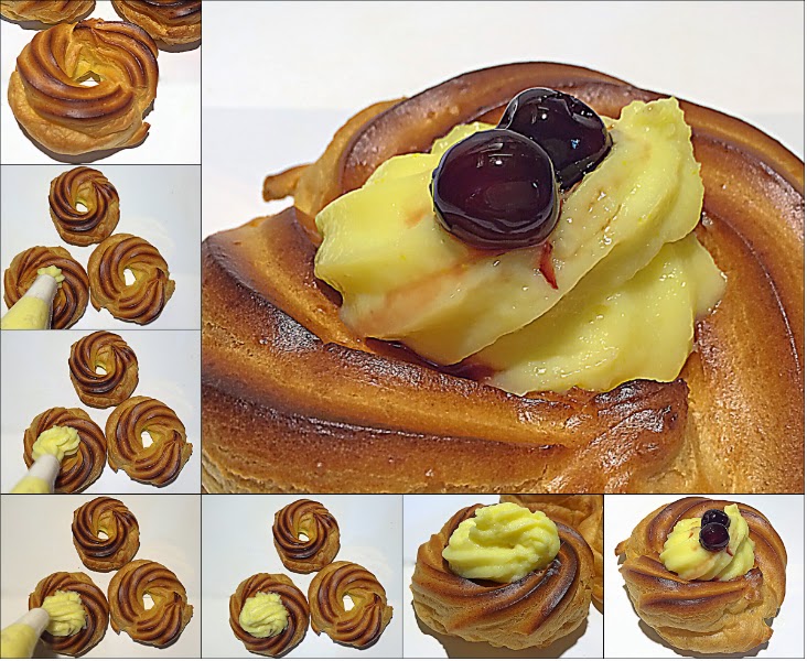 Ieri abbiamo parlato di Sfince di S.Giuseppe, oggi parliamo invece di zeppole, un altro esempio della pasticceria dedicata alla festa del 19 marzo. Esistono due versioni di questo dolce, una fritta e una al forno, entrambe ottime ma di gusto molto differente.Oggi vi propongo la versione al forno. Anche in questo caso si tratta di una pasta choux come quella utilizzata per fare i bignè che, una volta cotta, viene decorata con la crema pasticcera, un'amarena sciroppata e una spolverizzata di zucchero a velo.
